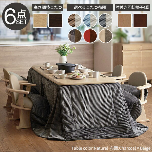 こたつ 長方形 ダイニングテーブル あったかヒーター-高さ調節機能付きダイニングこたつ〔アコード〕 150x90cm 6点セット(こたつ本体+専用省スペース布団+肘付き回転椅子4脚) ダイニングこたつ こたつ布団 ファン付き テレワーク リモートワーク ステイホーム